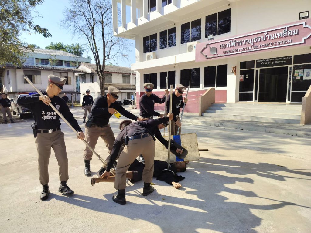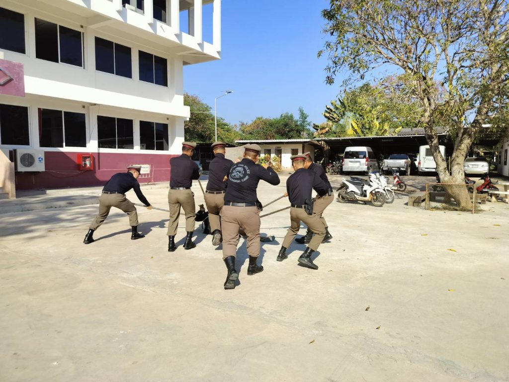 โดยมี ร.ต.ท.ธนโชติ มาตทะวงษ์ รอง สว(ป.) ฯ (ครูฝึก) โดยทำการฝึกท่าต่างๆ ดังนี้