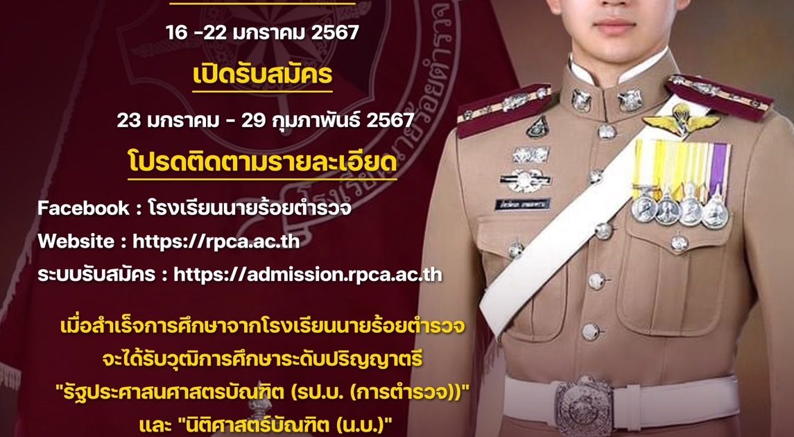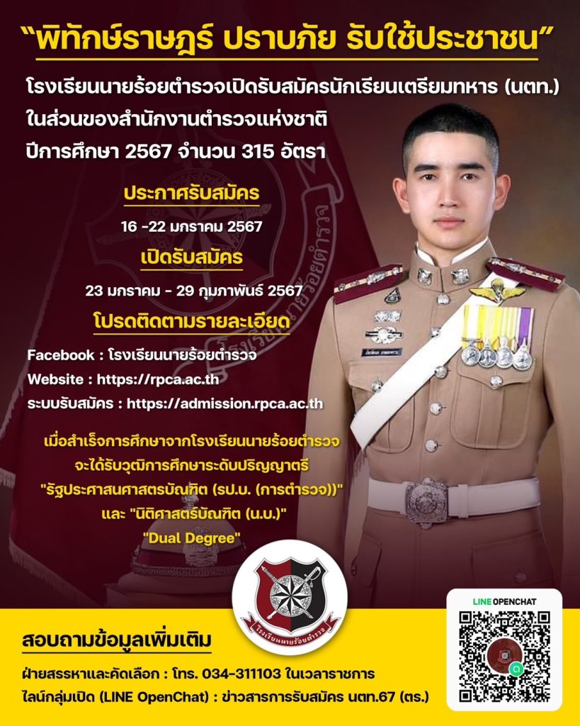 โรงเรียนนายร้อยนายร้อยตำรวจ เปิดรับสมัครนักเรียนเตรียมทหาร(นตท.) ในส่วนของสำนักงานตำรวจแห่งชาติ ปีการศึกษา 2567 จำนวน 315 อัตรา