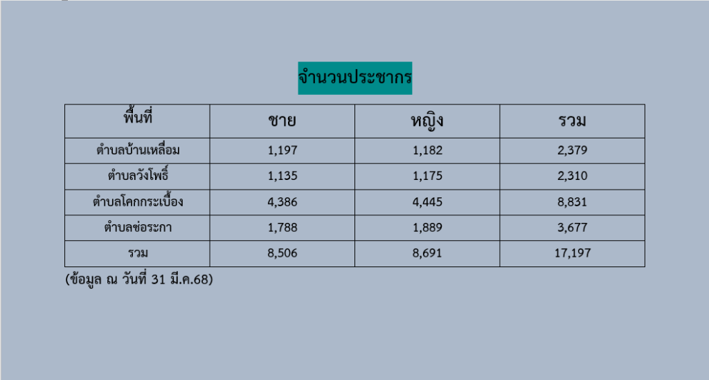 จำนวนประชากรอำเภอบ้านเหลื่อม